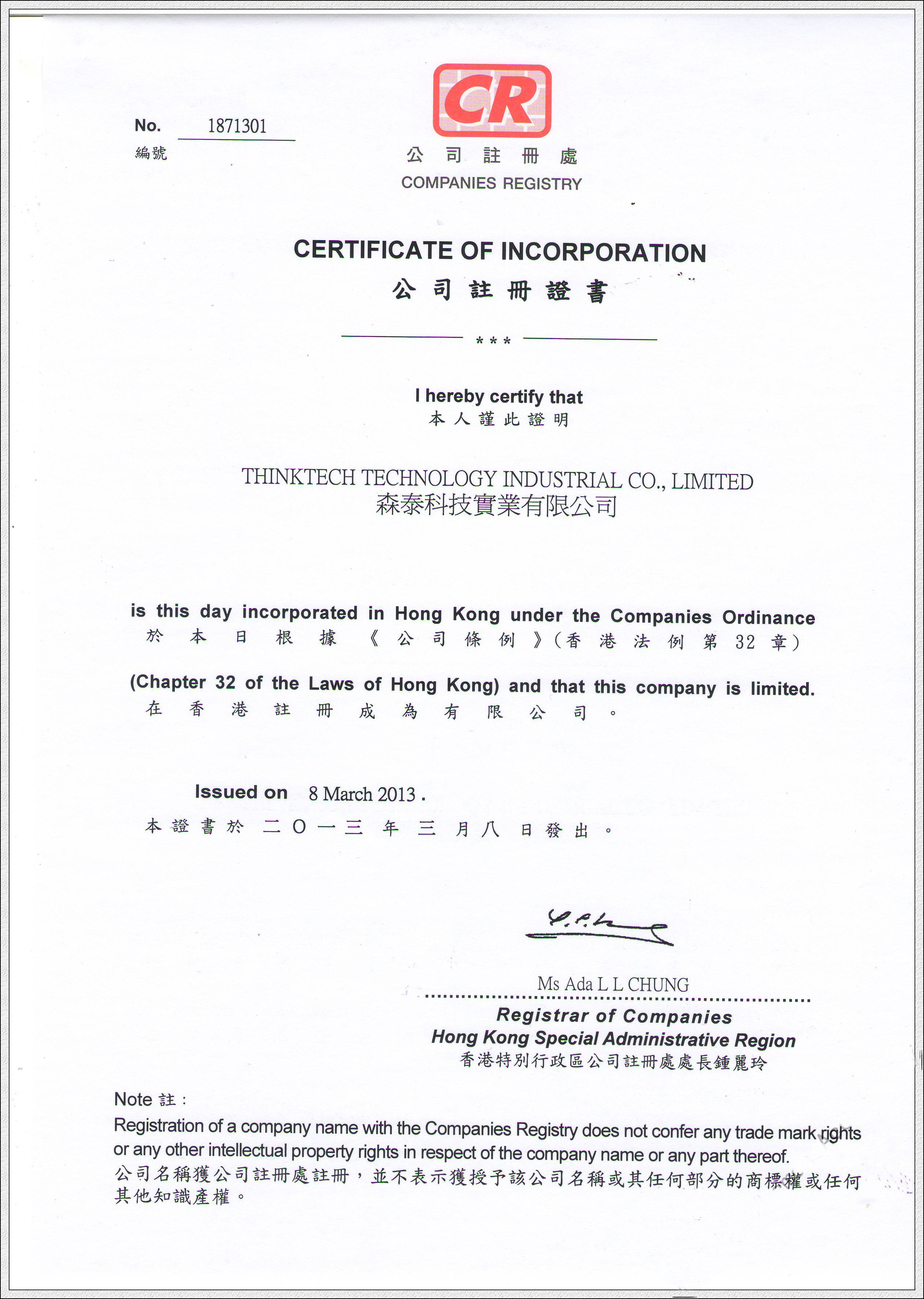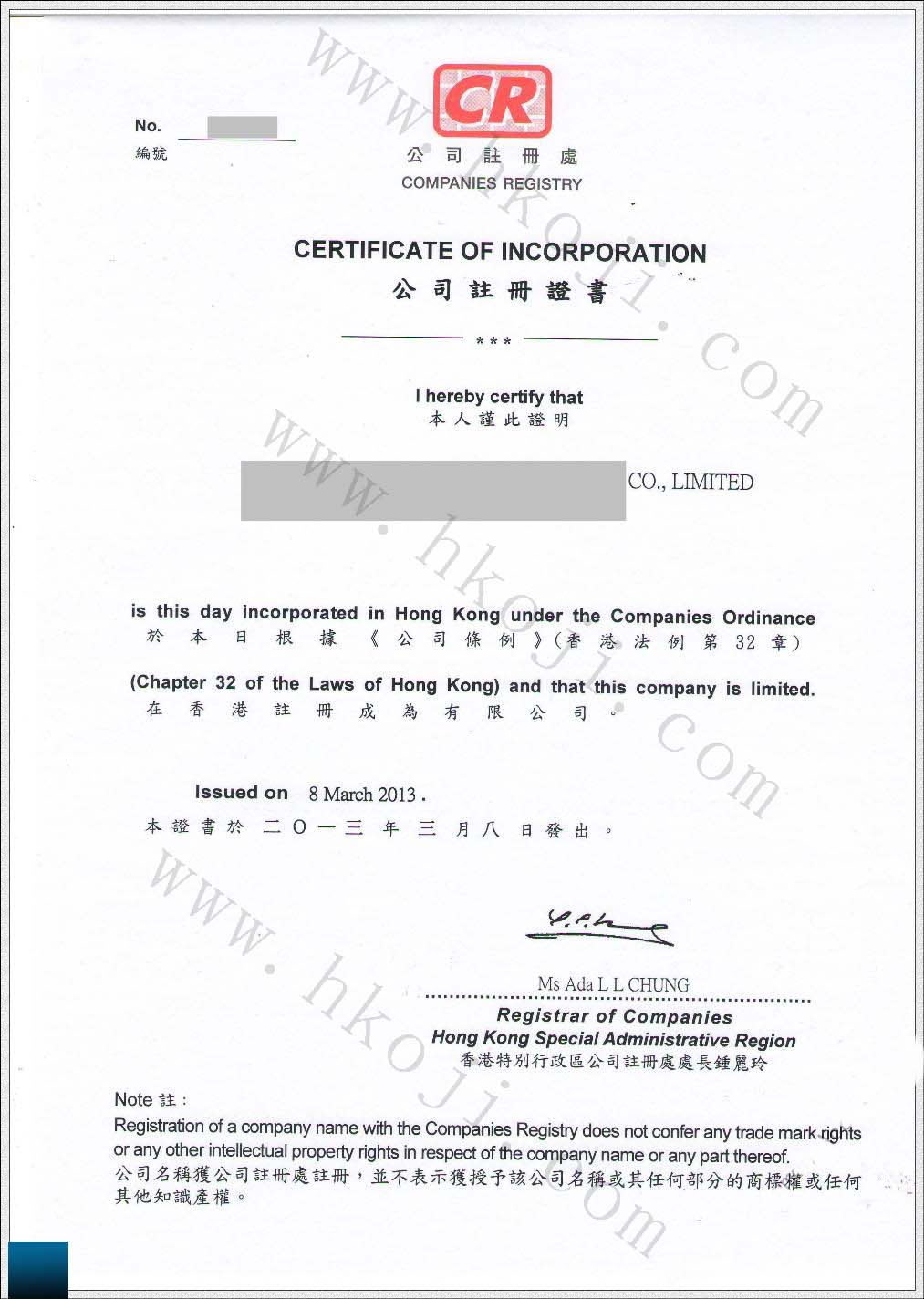 1、注册证书(相当于国内的营业执照,由注册处签发)